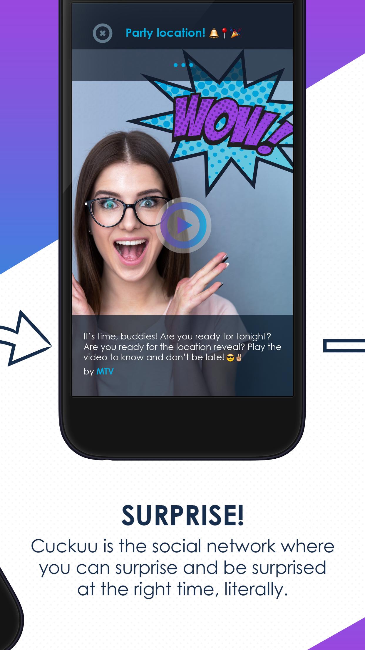 على عكس أي شبكة اجتماعية أخرى ، فإن التوقع هو المفتاح الذي يستخدمه Cuckuu لتحويل اللحظات التافهة إلى شيء لن ينساه الناس أبدًا ، من خلال التأكد من مشاركة التجربة من قبل الجميع في نفس الوقت. علاوة على ذلك ، من خلال استخدام الصور أو مقاطع الفيديو أو الروابط ، يمكننا أن نجعل كل حلقة تجربة جديدة من شأنها أن تفاجئك وتوصيلك بحياة الآخرين في الوقت المناسب.